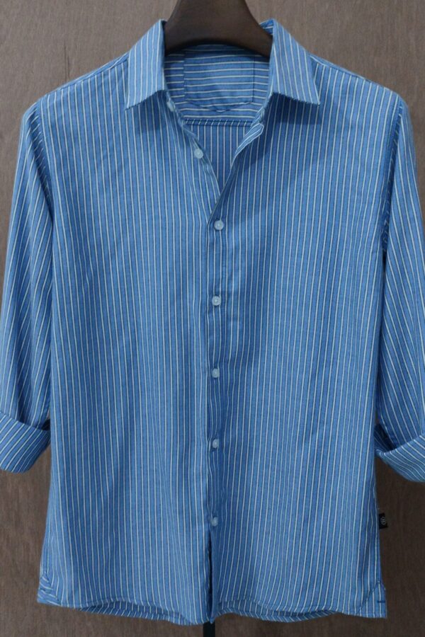 The Sky Blue With White Triple Pinstripes shirt from Byanjon is the perfect choice for effortless style. Crafted for comfort and breathability, this lightweight fabric keeps you cool during warmer days. With its sharp pinstripes and classic look, it’s ideal for both office wear and casual outings. If you’re looking for premium full-sleeve shirts for men in BD, this versatile piece is a must-have. Stay stylish and comfortable all season long with Byanjon.